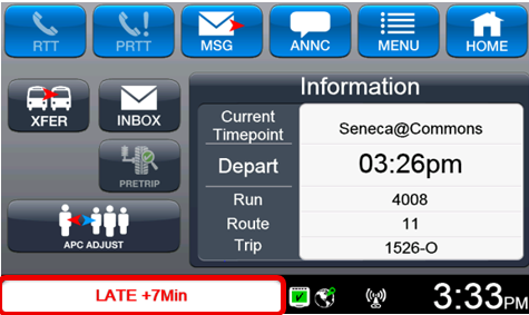 - Vehicle GPS time (used by the system to determine schedule adherence)