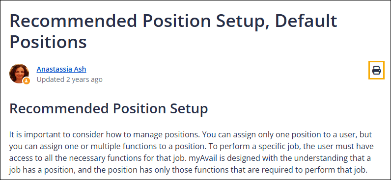 Your Avail Implementation team works with your team to review default positions and related functions during initial system setup.