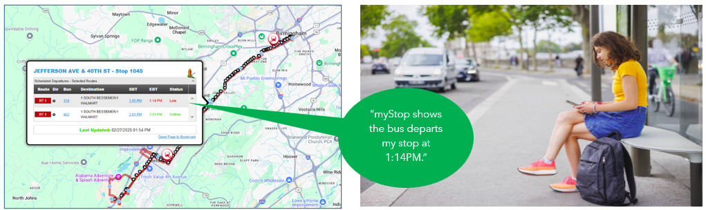 - Use myStop tools to support caller needs: where's the bus?