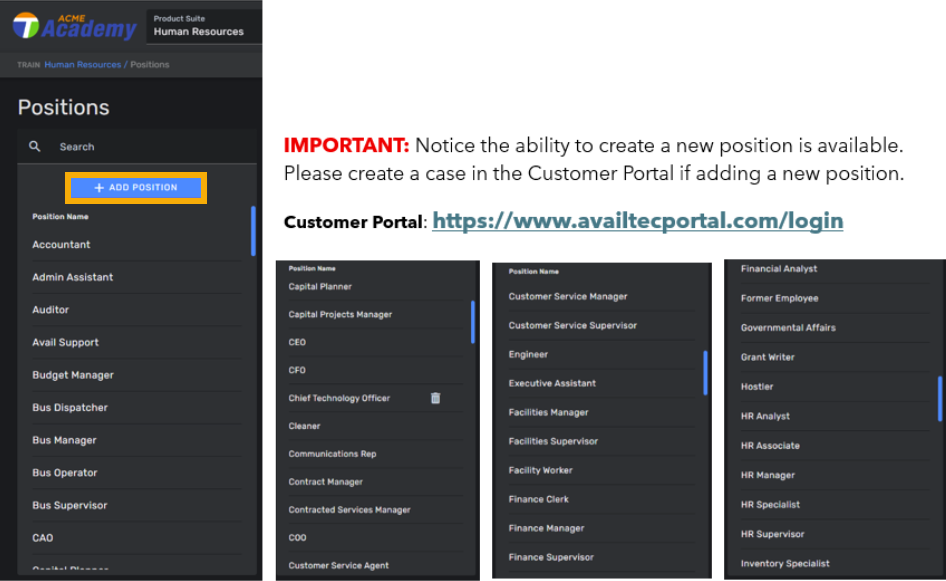 Please consult Avail when making any additional changes to any position structure. Customer Portal https://www.availtecportal.com