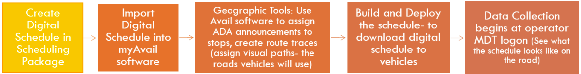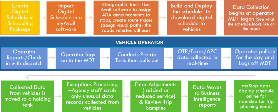 - Create schedule data and manage updates via a scheduling package vendor partner (Hastus, Trapeze, etc.)