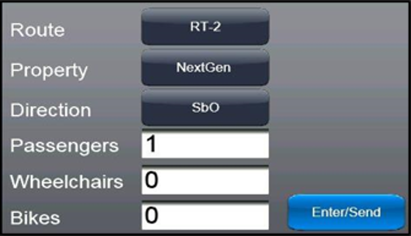 - Indicate the number of passengers and if the lift or bike rack will be needed. If necessary, press the Direction button to select the direction of the transfer trip for the transfer destination vehicle.