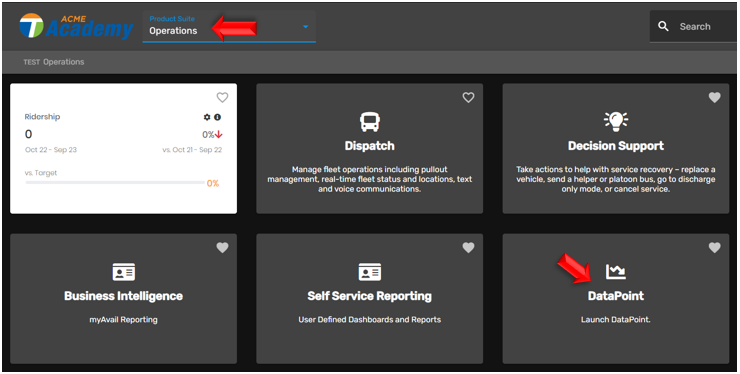 Navigate to the Operations product suite in ETMS and open your DataPoint card: