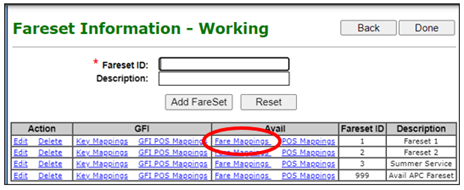 3. Select Fareset Information and click on update: