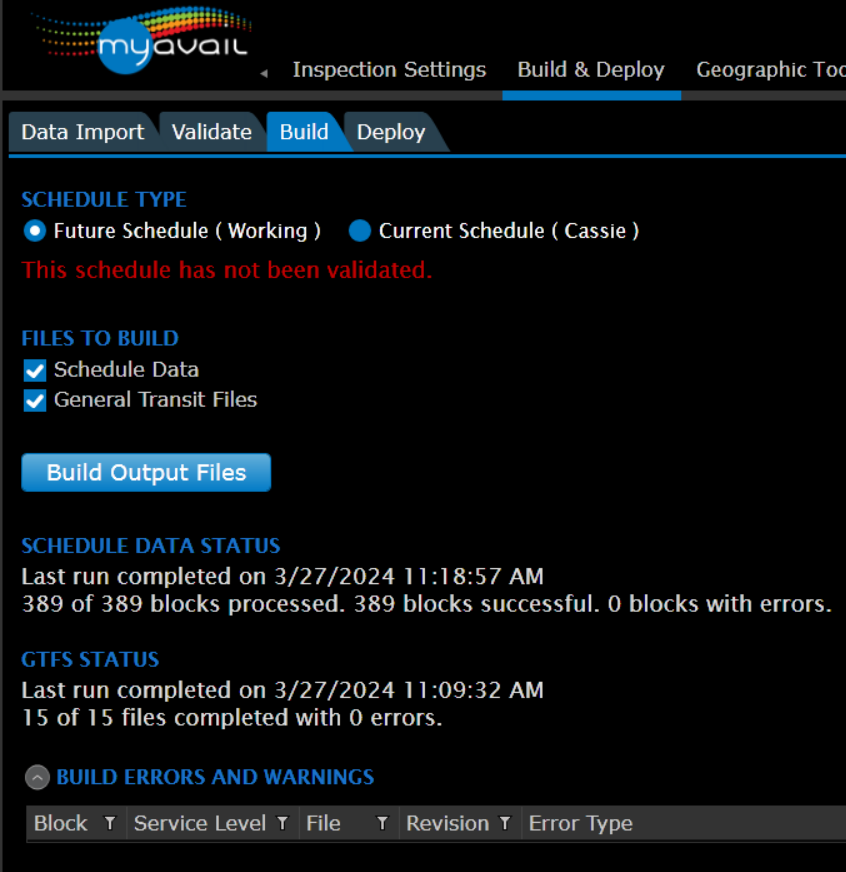 Use this article to learn how to set up fare buttons for use by vehicle operators via the MDT. These fare screens allow operators to press fare buttons to document each rider type that boards their vehicle (adult, child, student, senior, monthly pass, transfer, etc.). Setting up the fare structure must be completed in your DataPoint application in the Operations Product Suite, located in your web-based Avail tools. The final step will be setting up the deployment of these files to your fleet vehicles on the Build & Deploy tab. Follow the directions below to use this feature.