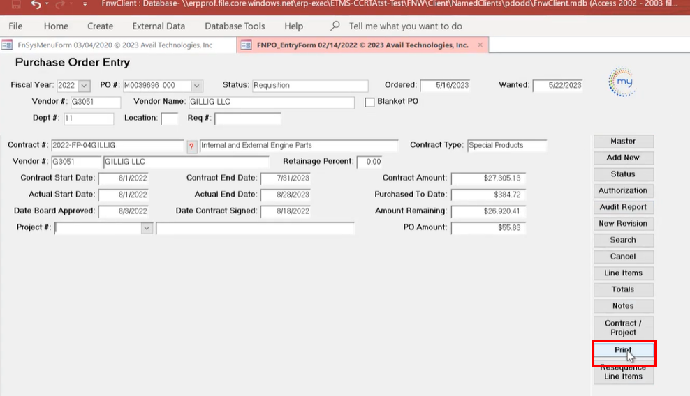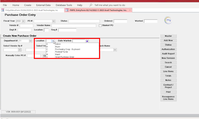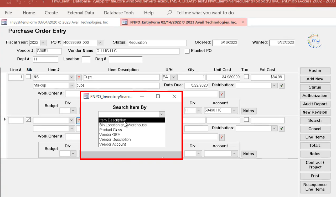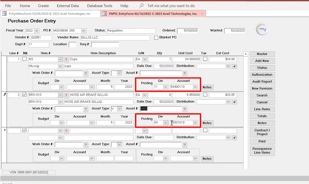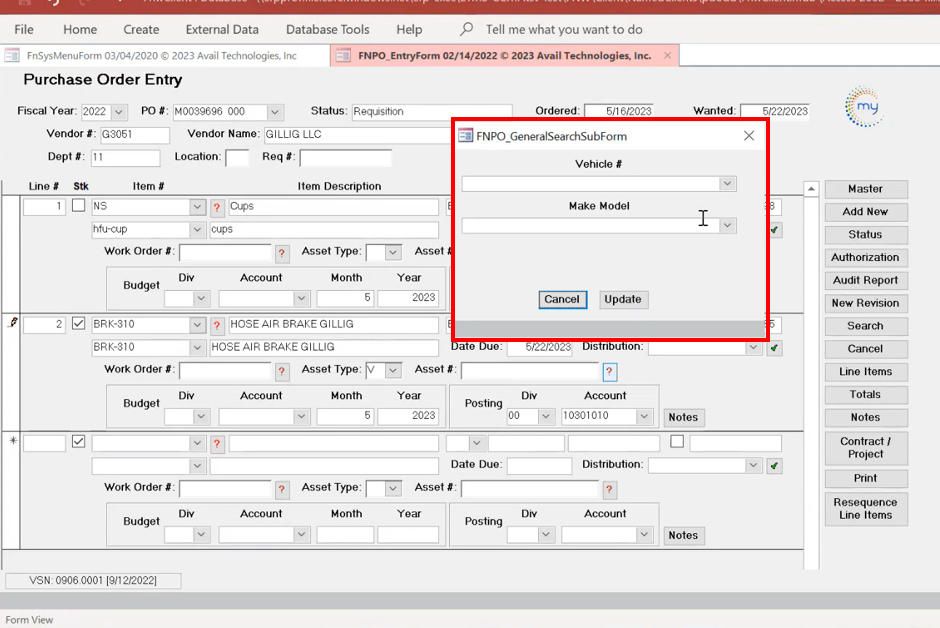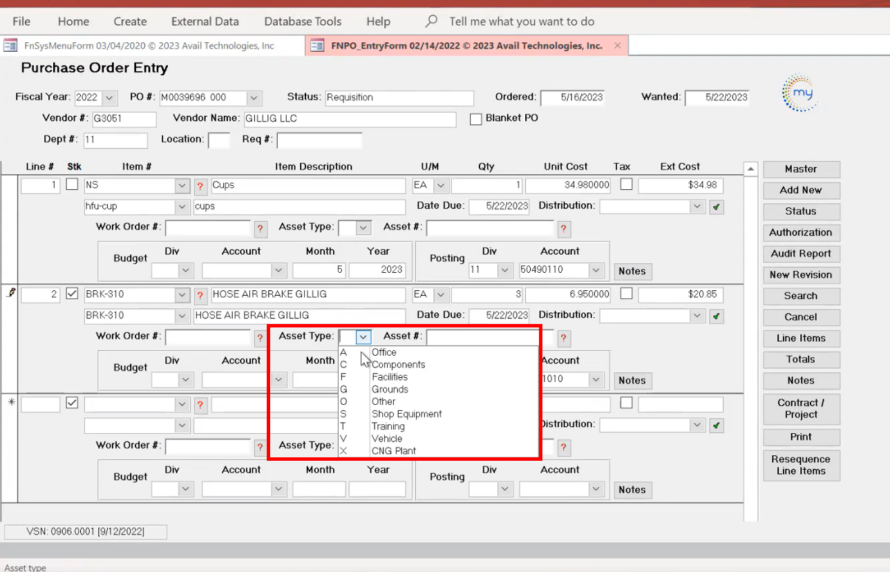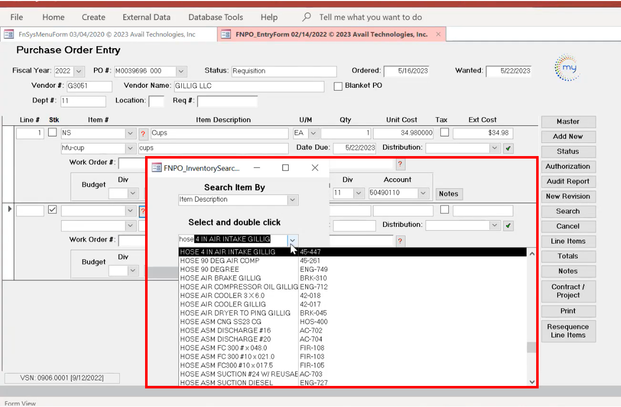 Avail Technologies, Inc. ERP modules are highly customizable. For this reason, there are agencies that use both the RQ and PO cards, and there are agencies that use the PO card, bypassing the RQ process. It really depends on agency internal standard operating procedures and, often, practice is driven by agency size.