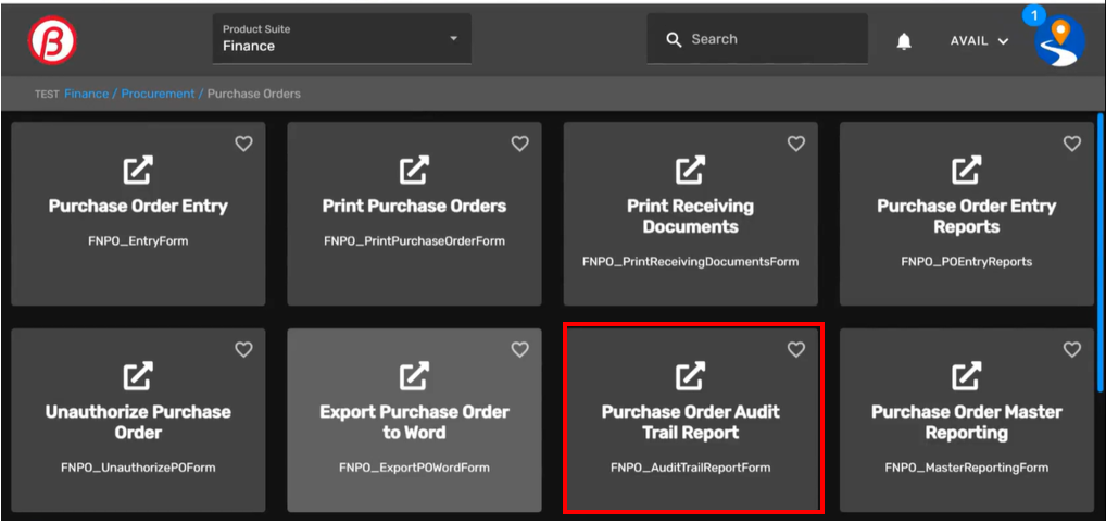 Use the Purchase Order Audit Trail card to review if any changes have been made on POs.