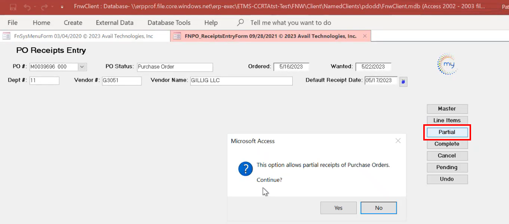 Use the Partial button when you only need to receive some of the items, but not all.