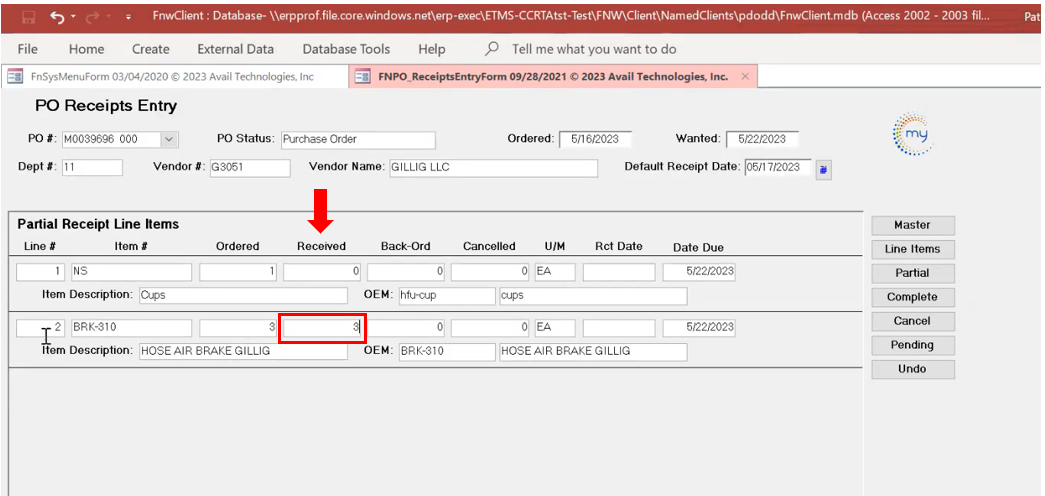 Partial PO Received