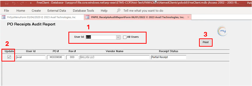 - Check the Update box to confirm this PO