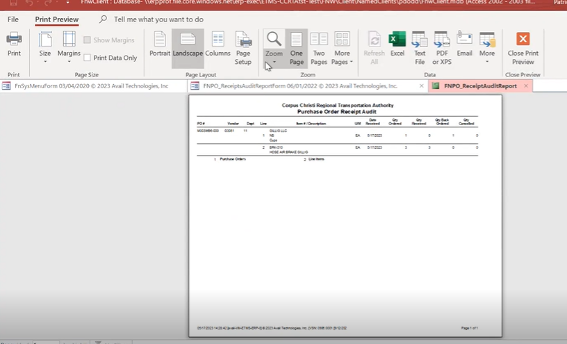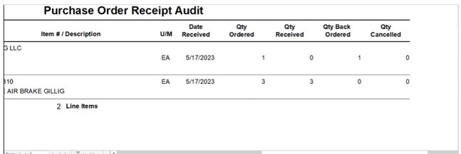 - Select the PO. Report displays
