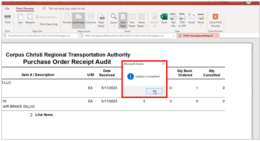 We searched for Outstanding PO Items. Then select Print Report to display the data.