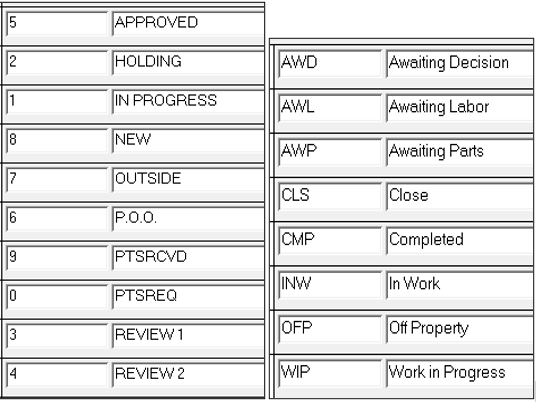 Status - Automatically generated when new work orders are created. An existing work order status can also be entered.