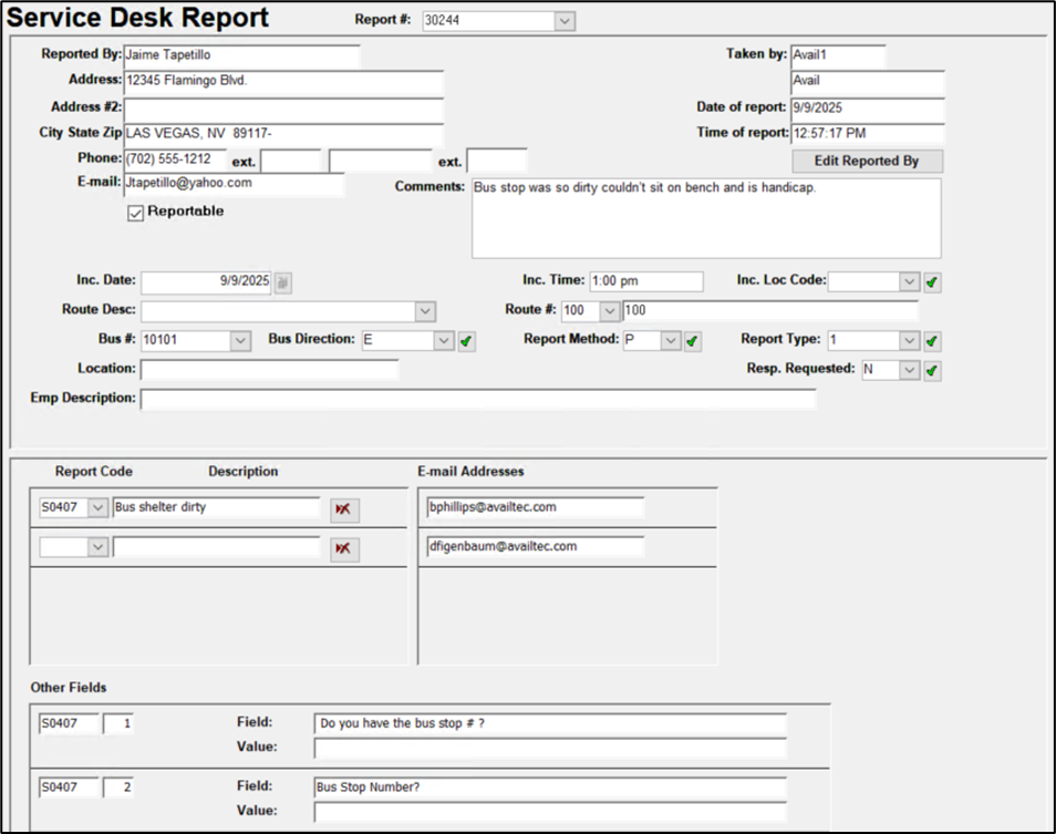 • Subject: Modified Service Desk Report Filed