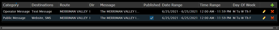 - myAvail automatically generates an Operator Message and a Public Message for each Route and Direction using the templates. The system creates separate messages for each direction, so you can customize messaging for each direction.