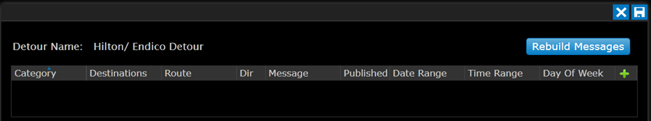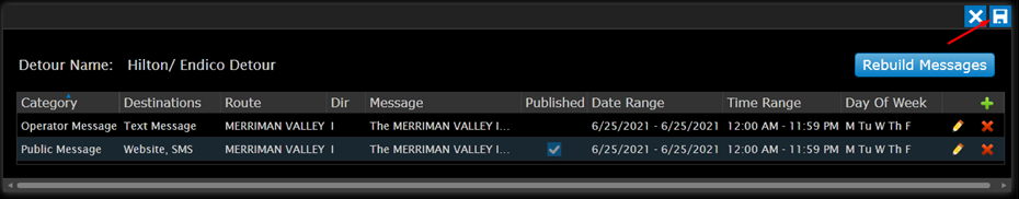 Click the Rebuild Message button to generate the initial set of Public and Operator Messages for the detour. Tip: These notifications use predefined message templates that are already in the system.