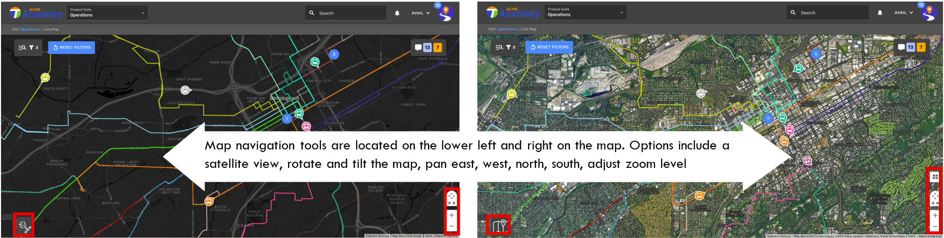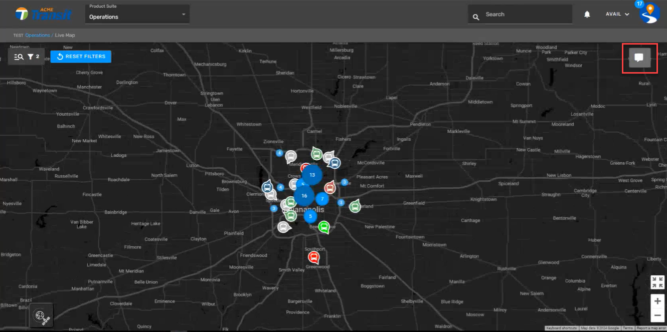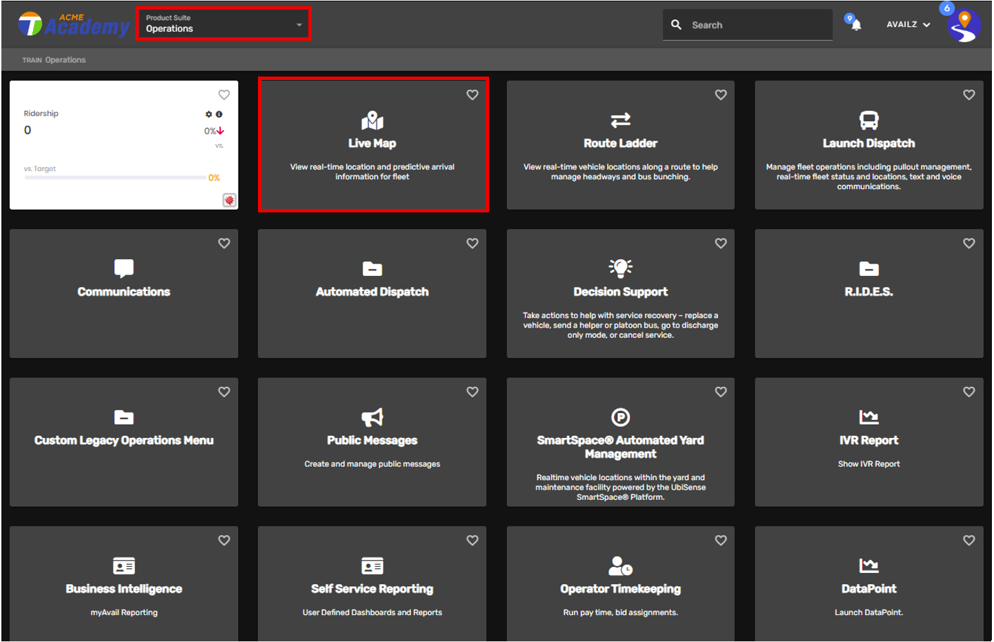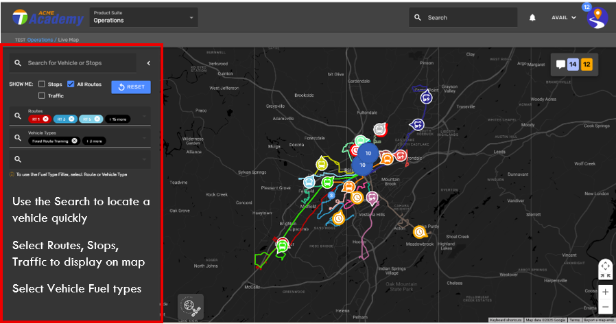 Live Map is our web-based map designed for customers. Many features included are based on customer feedback we received. Open this card and use it to monitor vehicles in service in real time, similar to the Operations Map, though Live Map also provides some unique enhanced features. Live Map can be open, in its own browser, while also monitoring Operations in the dispatch office. Enhancements include integration with Google Maps, advanced search capabilities and map navigation tools, and real-time vehicle information sharing similar to online myStop® tools, all to empower you to make well-informed decisions that support your operational efficiencies.