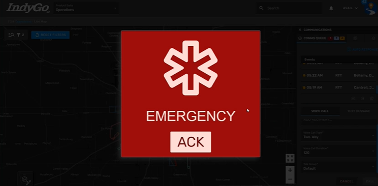 In the event the driver presses the EA button an Emergency notification is displayed on the Live Map screen.