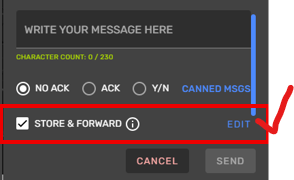 The Store & Forward checkbox in the Messages panel allows you to create a message now to send later. Use the date and time pickers to set this feature up.