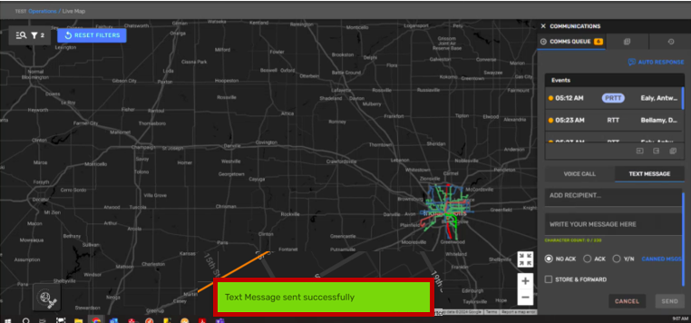 Use the Text Message tab to select recipients to send data messages to. You will also determine the response type needed: does the message require an acknowledgement? Is it a 'yes/no' response type? Do you just want to send a message that doesn't require an acknowledgment? After creating the message, you'll press send. You are also able to use canned text messages here, to save you time, if they have been created on the Canned Messages tab.