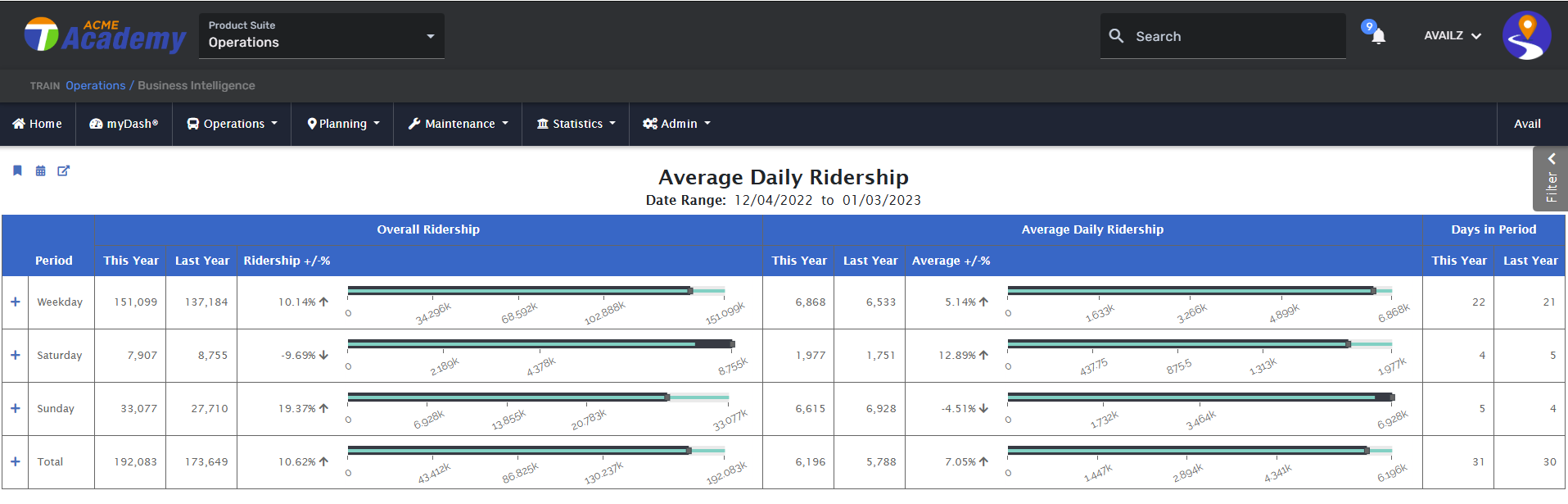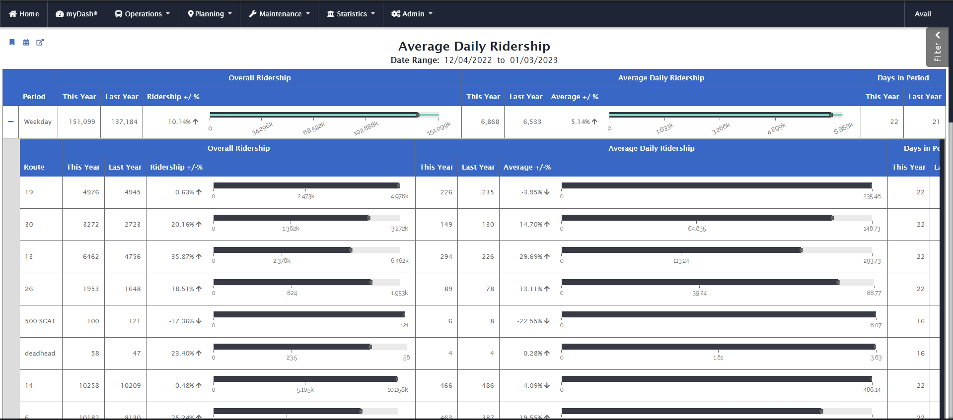 Navigation: ETMS > Operations > Business Intelligence Card > Planning > Ridership & APC > Average Daily Ridership