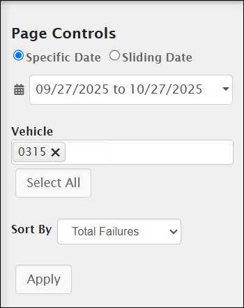 • Total Failures: The total number of Pre-Trip + ITS + VHM failures (Default)